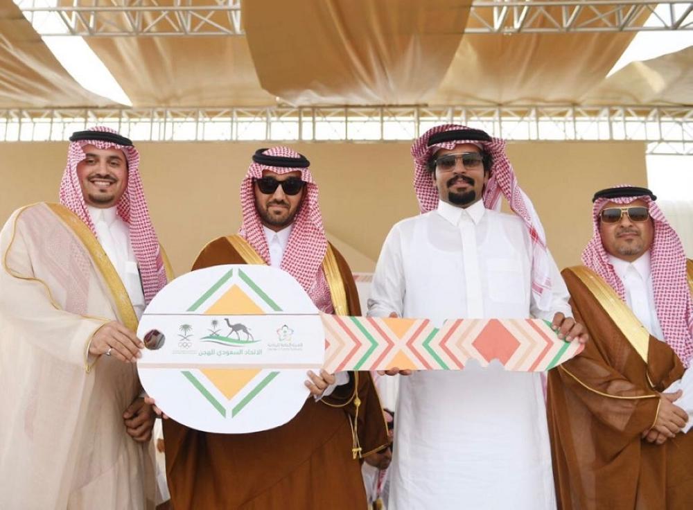 كرم نائب رئيس مجلس إدارة الهيئة العامة للرياضة نائب رئيس اللجنة الأولمبية العربية السعودية الأمير عبدالعزيز بن تركي الفيصل بن عبدالعزيز، الفائزين في ماراثون سوق عكاظ التراثي، الذي جاء ضمن فعاليات الاتحاد السعودي للهجن بميدان محافظة الطائف للهجن أمس (الخميس).