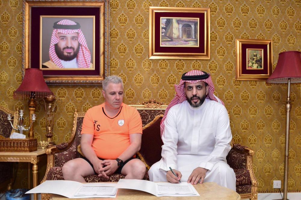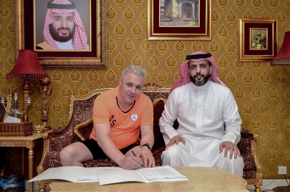 ونشر الحساب الرسمي للنادي صوراً لتوقيع العقد مع المدرب الجديد عبر حسابه بموقع التواصل الاجتماعي "تويتر".