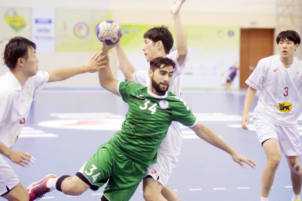 لقطة من مباراة شباب أخضر اليد مع اليابان.