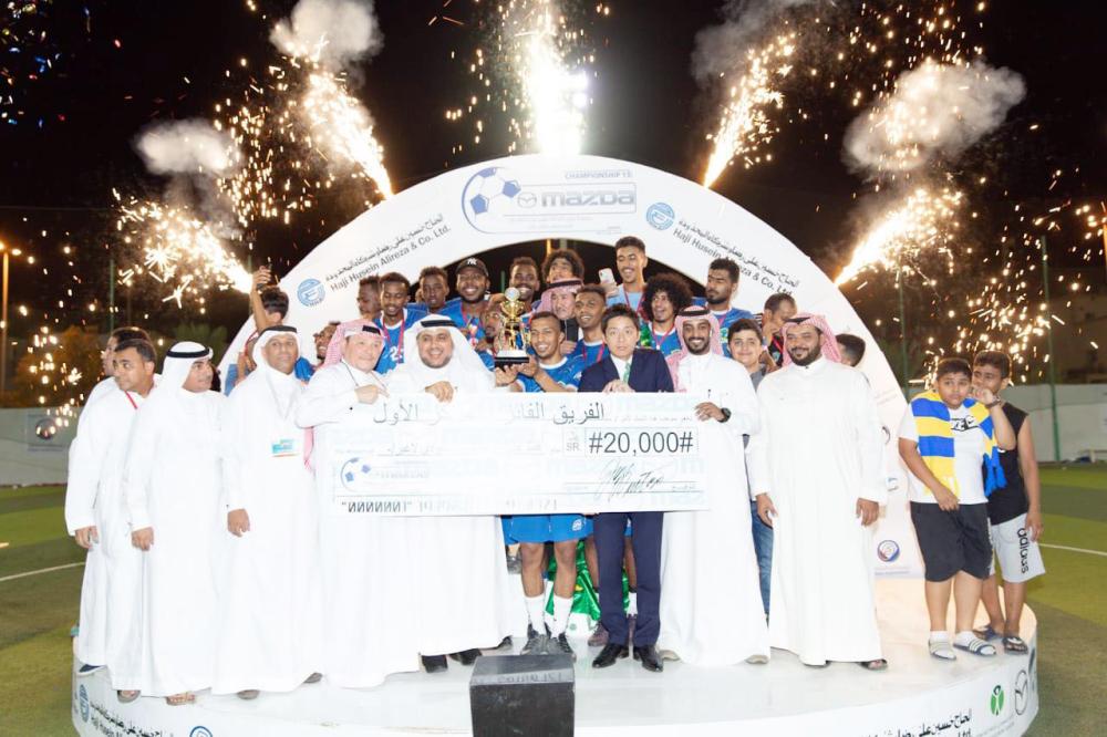 توج نائب رئيس مجلس الإدارة بغرفة جدة مازن بترجي، ومدير التدريب بشركة الحاج حسين علي رضا وشركاه المحدودة فهد نعمان، فريق ناديك للرياضة بطلا لدورة مازدا الـ13 لكرة القدم، ضمن فعاليات صيف جدة 39، بعد فوزه على فريق مازدا بضربات الترجيح 2/4، عقب انتهاء الشوطين الأصليين بالتعادل السلبي، في المباراة التي جمعتهما على ملعب فاير بول. وسلم مازن بترجي فريق ناديك الفائز بالكأس الميداليات الذهبية التي دخل بها أبناء اللاعب الدولي محمد الخليوي (رحمه الله) في مبادرة رائعة من اللجنة المنظمة، وتم منح الجوائز للمميزين في هذه الفعالية، إذ حصل فريق الأهلي كابيتال على جائزة اللعب النظيف، وجمهور فريق التوفير الصح على جائزة الجمهور المثالي، وقد دعمت اللجنة المنظمة اللاعبين الواعدين بدورة تدريبية مكثفة وتسويق لدى الأندية، واختارت 3 لاعبين من الفرق المشاركة هم نايف بابطين، وأحمد اليوبي، وعبدالقادر محمد، وحصل على جائزتي الهداف وأفضل لاعب أحمد فرح من فريق ناديك للرياضة، وحصد أفضل حارس أحمد أكبر من فريق مطعم أوغور.