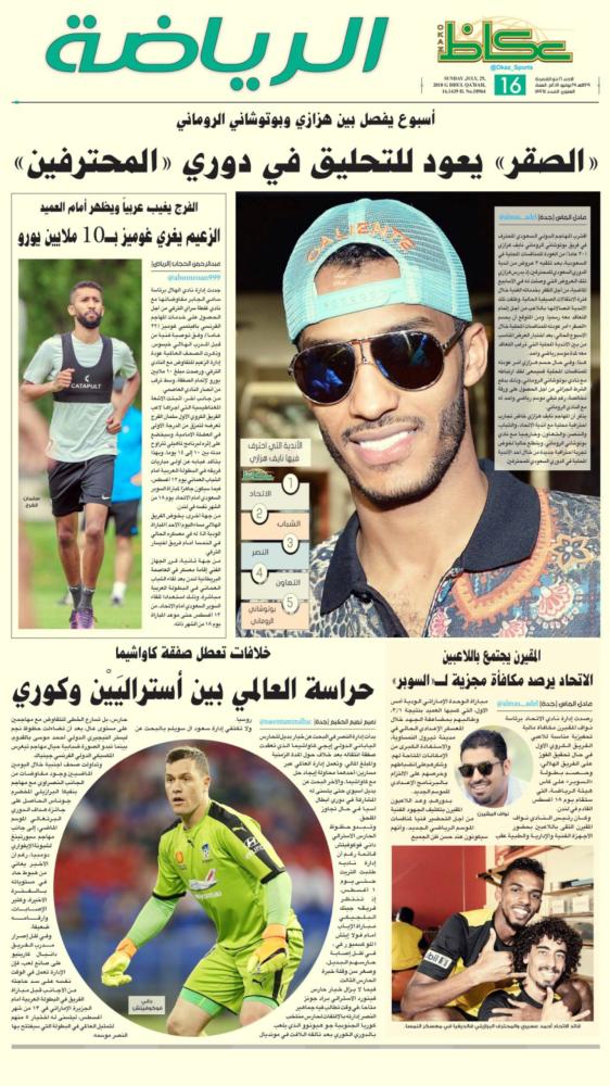 من المنتظر أن تعلن إدارة نادي أحد خلال الساعات القادمة التعاقد رسمياً مع المهاجم الدولي والمحترف في فريق بوتوشاني الروماني نايف هزازي (30 عاما)، بعد أن توصل الطرفان لاتفاق نهائي على صيغة بنود العقد الاحترافي الذي سيتم توقيعه لمدة موسم رياضي واحد، بعد فك ارتباطه مع نادي بوتوشاني وحصوله على ورقة مخالصة نهائية، تمهيداً للتوقيع مع نادي أحد بحضور الرئيس سعود الحربي، وعودته للعب في الدوري السعودي للمحترفين، كما انفردت «عكاظ» بتفاصيل عودته للاحتراف محلياً، وسينضم هزازي لتدريبات الفريق الأحدي اليوم بعد وصوله إلى الأردن التي تحتضن معسكر الفريق الكروي الإعدادي للموسم القادم، وكانت الإدارة الأحدية كثفت مفاوضاتها مع «الصقر» خلال الأسابيع الماضية، ونجحت في الوصول لاتفاق مع الهزازي لتمثيل الفريق الكروي الموسم القادم، رغم دخول ناديين أحدهما من المنطقة الوسطى والآخر من المنطقة الشرقية على خط المفاوضات إلا أن هزازي فضل نادي أحد للعرض الجاد، وتجديد الرغبة القوية في الظفر بخدماته الفنية، ويتطلع «الصقر» لعودة مختلفة مع الفريق الأحدي والظهور بمستوى فني جيد يقوده للعودة مجدداً لتمثيل المنتخب السعودي الذي تنتظره مشاركة قارية من خلال بطولة كأس أمم آسيا في الإمارات التي ستنطلق في مطلع شهر يناير من العام 2019.