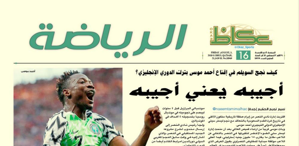 كتبت إدارة سعود آل سويلم تاريخا جديدا بإبرامها أغلى صفقة في تاريخ الكرة السعودية بعد إعلانها فجر أمس عن التعاقد مع النجم الدولي النيجيري أحمد موسى قادما من ليستر سيتي بصفقة انتقال لمدة أربع سنوات مقابل 15 مليون جنيه إسترليني.