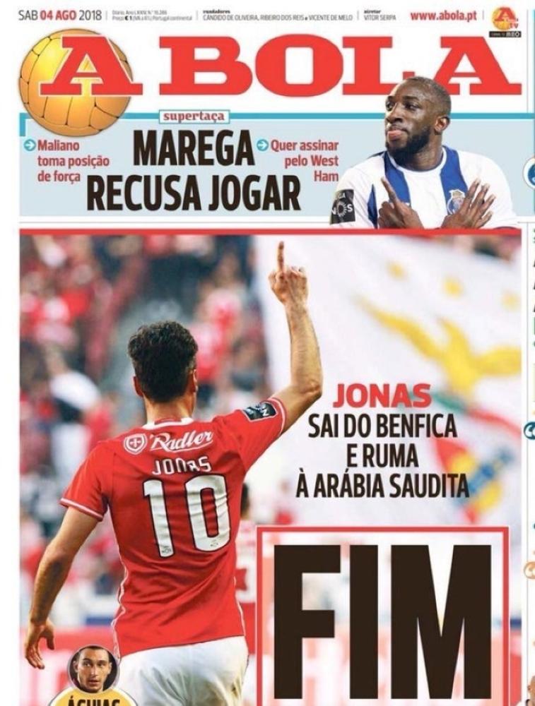 وكانت الصحف البرتغالية أكدت اقتراب النصر من التعاقد مع المهاجم البرازيلي الملقب بـ«السفاح» مقابل 14 مليون يورو، إذ أشارت صحيفة o jogo البرتغالية إلى أن جوناس (34 عاما) سيتقاضى أكثر من 3 أضعاف راتبه الحالي، في وقت أكدت صحيفة ABola ذائعة الصيت أن اللاعب سيخرج للسعودية بعد تلقيه عرضا بقيمة أكثر من 5 ملايين دولار لمدة عام من النصر، بينما سيحصل نادي بنفيكا على 5 ملايين يورور من بيعه، ويعد جوناس واحدا من أفضل المهاجمين في أوروبا، إذ سجل مع فريقه بنفيكا البرتغالي آخر 3 مواسم 122 هدفا وصنع 38 هدفا في 152 مباراة ليسهم بـ 160 هدفا، وحصل الموسم الماضي على هداف الدوري البرتغالي بتسجيله 34 هدفا في 30 مباراة، فيما مرر 6 تمريرات حاسمة، وترغب إدارة سعود آل سويلم في التعاقد مع مهاجم تقليدي وصانع لعب بعد صفقة النجيري أحمد موسى، لكنها ستضطر للمفاضلة بين المغربي محمد فوزير والمدافع البرازيلي برونو أوفيني للاستغناء عن أحدهما بالتشاور مع المدرب كارينيو.