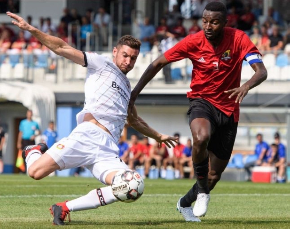 هوساوي يخلص الكرة من أمام مهاجم ليفركوزن.