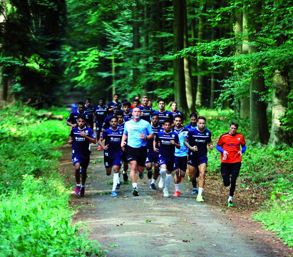 جانب من مران لاعبي الباطن بمدينة توبيز البلجيكية في إحدى الغابات.