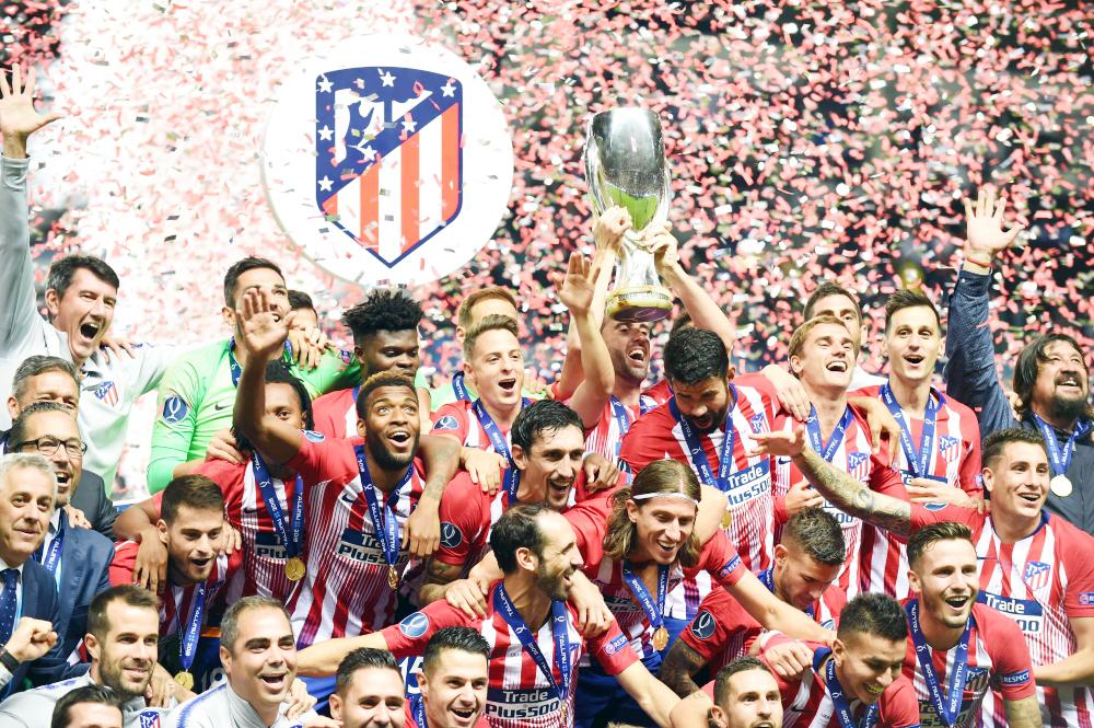 لاعبو أتلتيكو مدريد يحتفلون بلقب السوبر الأوروبي.