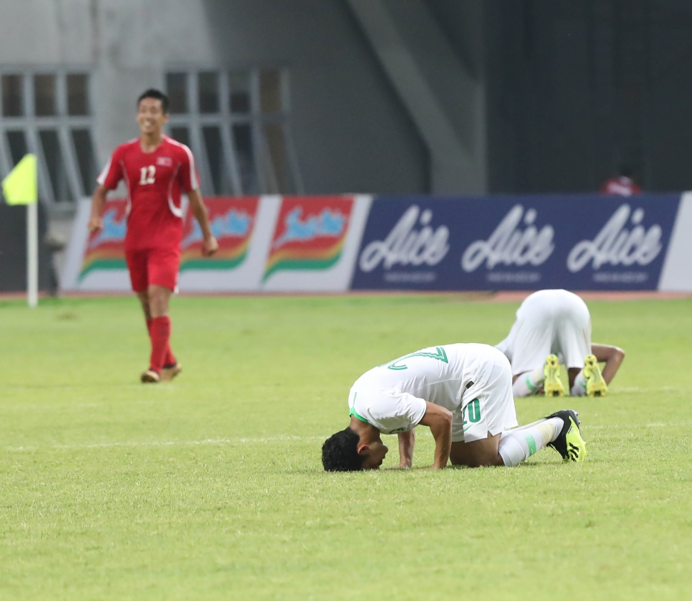 تأهل المنتخب الوطني الأوليمبي لكرة القدم لدور الـ16 رغم خسارته القاسية من كوريا الشمالية بثلاثية نظيفة، إذ احتل المركز الثالث، وتساوت المنتخبات الـ 4 بنفس الرصيد النقطي 4 نقاط بعد فوز ميانمارعلى إيران 2/ 0، وساهم فارق الأهداف في تحديد مراكز المنتخبات الـ 4، إذ جاءت إيران أولاً وكوريا الشمالية ثانياً بأفضلية اللقاءات المباشرة على منتخبنا الذي حل ثالثاً على حساب منتخب ميانمار الذي جاء أخيراً.