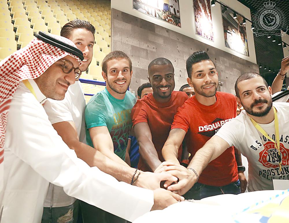 محترفو العالمي خلال حضورهم مناسبة افتتاح المتجر.