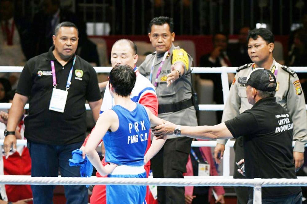 تدخلت الشرطة وقوات الأمن الإندونيسية (السبت) لطرد اثنين من مدربي فريق الملاكمة الكوري الشمالي المشارك في دورة الألعاب الآسيوية، بعد احتجاجهما على خسارة إحدى الملاكمات الكوريات أمام منافستها الصينية.