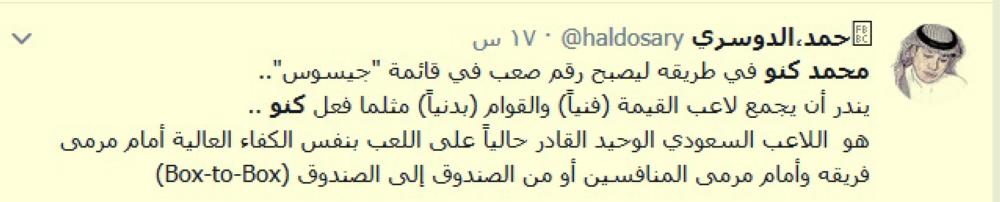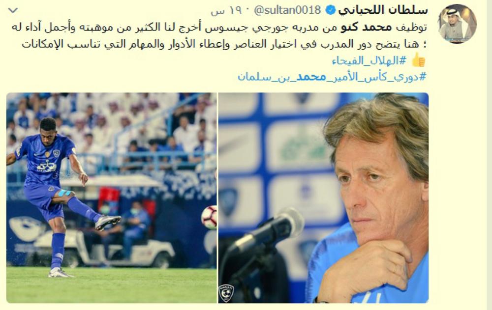 محمد كنو الذي انتقل إلى الهلال قبل موسمين قادماً من فريق الاتفاق لم يمنح الفرصة الكاملة مع الهلال في الموسم الماضي، رغم مطالبات الجماهير والنقاد الرياضيين المقربين من البيت الأزرق، إلا أن خيسوس يبدو أنه سيضعه بعين الاعتبار ليصبح اللاعب الأول لديه في خط الوسط، لخلق منافسة قوية بينه وبين زملائه في المركز نفسه، وتحديدا النجم الدولي «المايسترو» عبدالله عطيف.