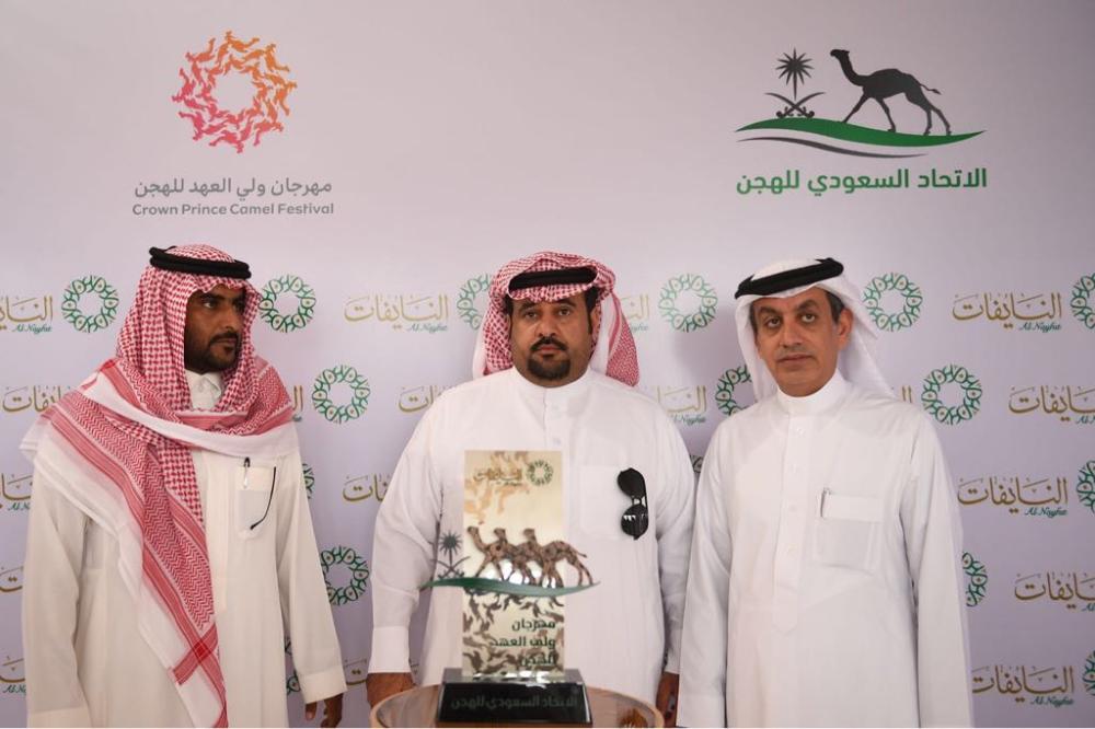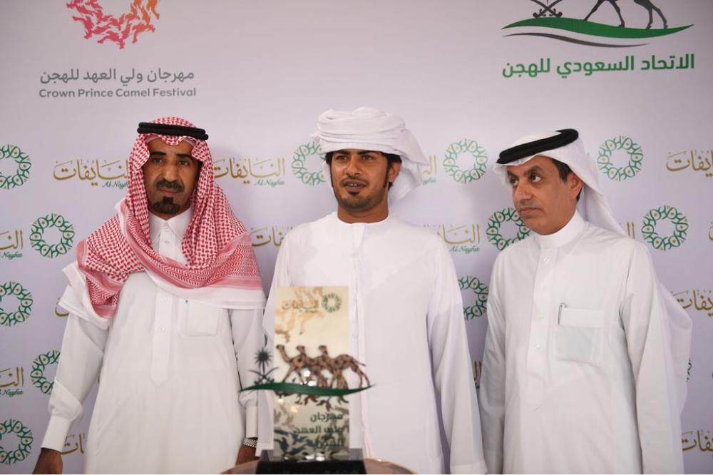كرمت مساء اليوم (الأحد) هجن النايفات الفائزين بالمراكز الأولى في سباق التنشيطي الثاني لمهرجان ولي العهد للهجن بميدان محافظة الطائف في أشواط العامة لسن الحقايق (قعدان)، والتي شملت الفترتين الصباحية والمسائية بمجموع 30 شوط.