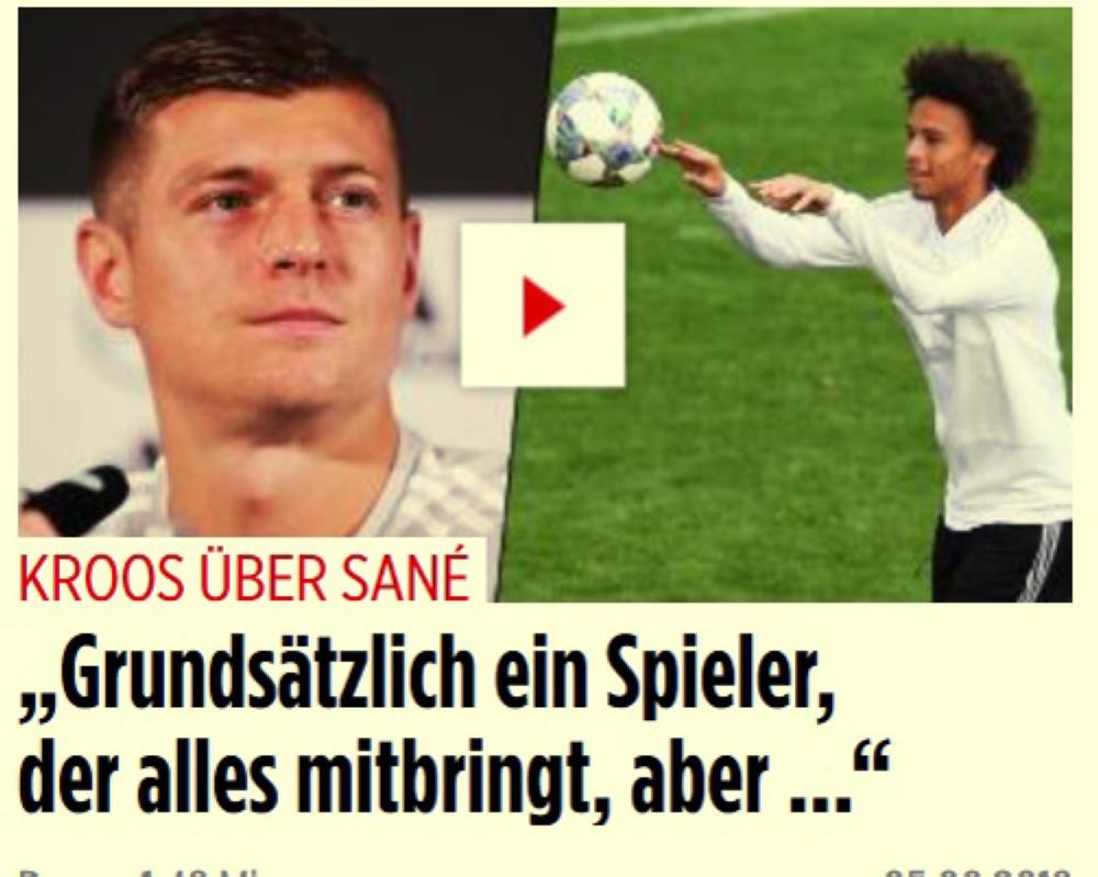 طالب النجم الدولي الألماني لاعب خط وسط الفريق الأول لكرة القدم بنادي ريال مدريد توني كروس زميله نجم مانشستر سيتي الإنجليزي ليروي ساني تغيير تصرفاته لإظهار إمكاناته الحقيقية ويصبح مؤثراً مع ناديه وبلاده. وعاد ساني الذي استبعد من تشكيلة ألمانيا التي ودعت كأس العالم من دور المجموعات في روسيا إلى منتخب بلاده، بعدما استدعاه المدرب لوف، إذ أشار كروس إلى أنه يجب على ساني أن يظهر رغبة أكبر. وأضاف كروس: في بعض الأحيان تشعر أن لغة جسد ساني واحدة طيلة الوقت سواء كنا نفوز أو نخسر، يجب عليه تغيير ذلك، يملك كل شيء ليصبح لاعباً بارزاً، لكن في بعض الأحيان يجب أن تبلغه أن عليه تقديم أداء أفضل. وزاد: الأمر الواضح أن ساني يملك الكفاءة والسرعة بقدمه اليسرى، وقدم أداء مذهلا مع السيتي في الموسم الماضي، لكن بيب يواجه المشكلة ذاتها في الوقت الحالي، إنه يحاول استخراج أفضل ما لديه.