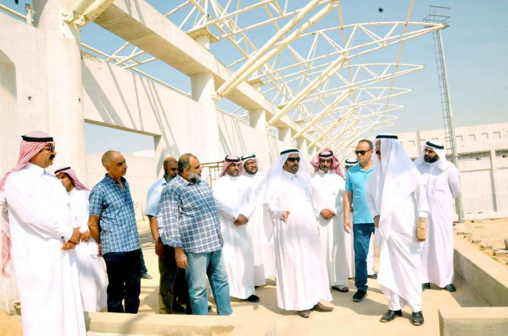 وتجول الجاسر مع المجلس في المنشأة واطلع على ما تم تتفيذه من المشروع من الملاعب والصالات ومواقع الجمهور والمنصة الرئيسية والمسابح ومواقع الإدارة والصيانة.