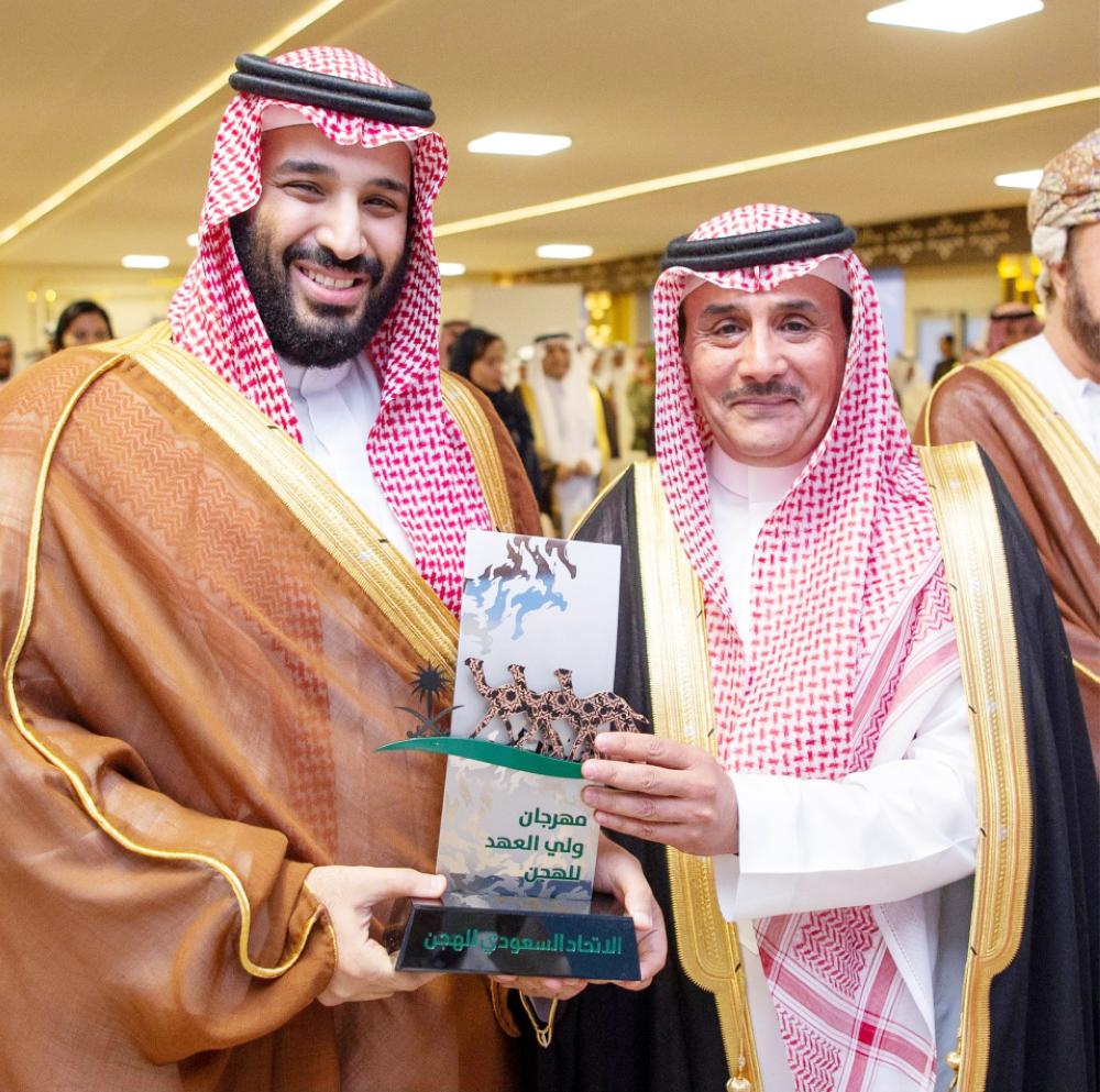 وتوج ولي العهد الفائزين بالمراكز الأولى للأشواط الختامية لمهرجان ولي العهد للهجن في جميع فئاتها بالجوائز، كما سلم سموه جوائز المراكز الأولى بالأشواط الأربعة الأخيرة بالمهرجان، حيث فازت به الهجن «العنود» لخالد بن فيصل بن شريم لفئة «حيل عام» وجائزته سيف ومبلغ (1.500.000) ريال،. بينما فازت المطية «سعود» لسعد عبدالهادي المري لفئة زمول عام وجائزته بندق ولي العهد، وخنجر، ومبلغ مليون ريال، وفازت به المطية «الحاكمة» من هجن الرئاسة، لعلي جميل الوهيبي لفئة حيل مفتوح وجائزته سيف، ومبلغ (1.500.000) ريال، وفازت به هجن الرئاسة لعلي جميل الوهيبي. لفئة زمول مفتوح، وجائزته بندقية ولي العهد ومبلغ مليون ريال، وهدية «خنجر» مقدمة من الشيخ محمد بن زايد آل نهيان.