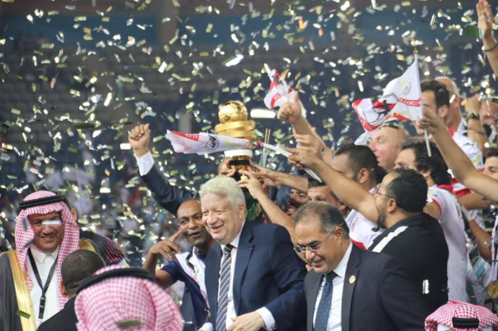 توج نائب أمير منطقة الرياض الأمير محمد بن عبدالرحمن، فريق الزمالك المصري ببطولة السوبر السعودي المصري على كأس الرئيس عبدالفتاح السيسي، بعد فوزه أمس بعد على مضيفه الهلال بهدفين مقابل هدف، في المباراة التي جمعتهما على ملعب جامعة الملك سعود في الرياض.