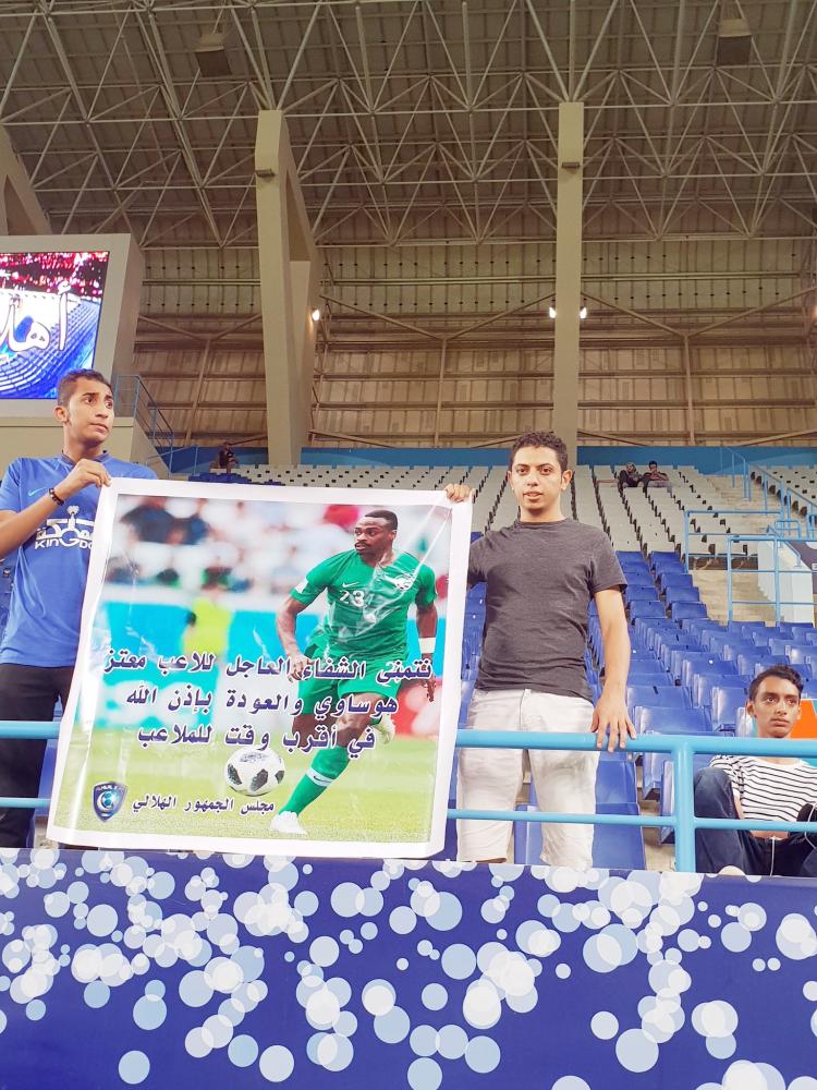 قام مجلس الجمهور الهلالي الحاضر لمؤازرة المنتخب السعودي أمام نظيره البرازيلي في اللقاء الذي أقيم على ملعب جامعة الملك سعود، ضمن بطولة «السوبر كلاسيكو» الدولية الودية برفع لافتة تجاه لاعب منتخبنا الوطني والنادي الأهلي معتز هوساوي، كتب فيها نتمنى للاعب الشفاء العاجل، والعودة للملاعب في أسرع وقت، وقد لاقت هذه البادرة استحسان الجمهور الرياضي السعودي كونها تدل على نبذ التعصب والاحتقان بين جماهير الأندية.