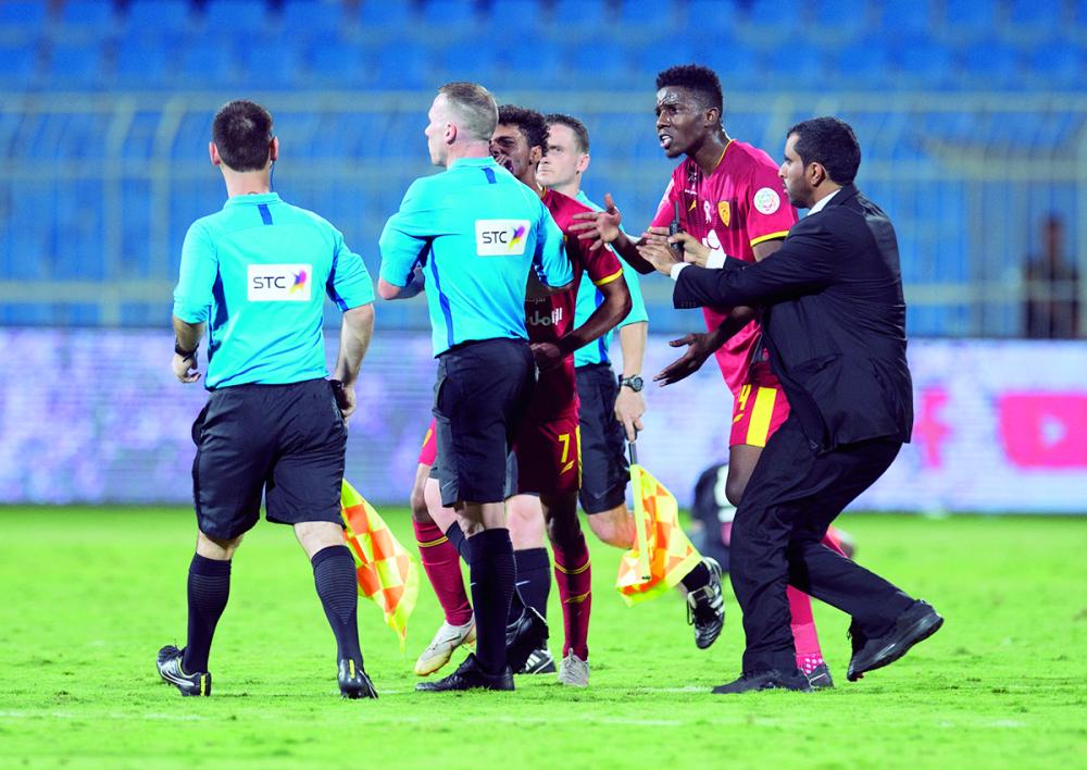 من المؤكد أن تصدر لجنة الانضباط والأخلاق بالاتحاد السعودي لكرة القدم، قراراً يقضي بإيقاف وتغريم عدد من لاعبي نادي القادسية، بعد محاولة اعتدائهم على الحكم سيمون لي أيفانس، الذي أدار مواجهتهم أمام الشباب ضمن الجولة السابعة من دوري كأس الأمير محمد بن سلمان للمحترفين لكرة القدم، والتي انتهت شبابية بنتيجة 2 / 1، وكان لاعبو القادسية قد اعترضوا وطالبوا الحكم بالاستعانة بتقنية حكم الفيديو المساعد بداعي وجود خطأ ضد أحد لاعبي الشباب قبل الهدف، لكن الحكم احتسبه رغم الاستعانة بالتقنية. وكانت اللجنة غرمت رئيس نادي الاتحاد نواف المقيرن عشرة الاف ريال، ونائب رئيس نادي الهلال فهد الراشد 20 ألفا وذلك لدخولهما إلى مضمار الملعب، ونادي الهلال 30 ألفا لقيام جمهوره بإلقاء مقذوفات باتجاه الملعب.