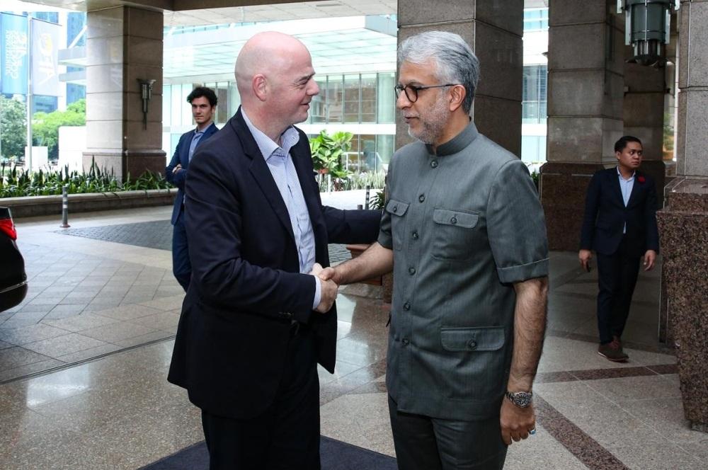 من جانب آخر، رحب الشيخ سلمان بن إبراهيم آل خليفة برئيس الاتحاد الدولي لكرة القدم السويسري جياني إنفانتينو خلال استقباله له لدى وصوله إلى مقر إقامته في العاصمة الماليزية كوالالمبور، مشيداً بحرصه على مشاركة أسرة الكرة الآسيوية احتفالها بافتتاح المبنى الجديد للاتحاد القاري وحضور اجتماع الجمعية العمومية للاتحاد.
