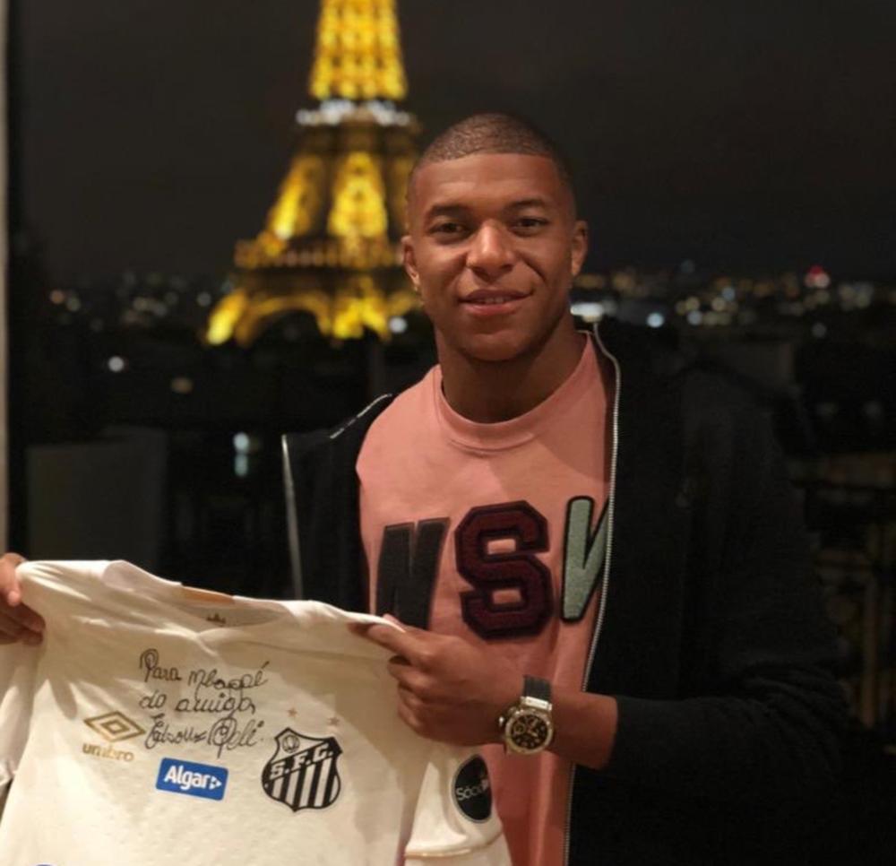 وفي سبتمبر، أرسل بيليه لمبابي هدية هي عبارة عن قميص ناديه السابق سانتوس ممهورا بتوقيعه. وشكره مبابي بتغريده عبر حسابه على "تويتر" جاء فيها "شكرا للهدية الرائعة أيها الملك".