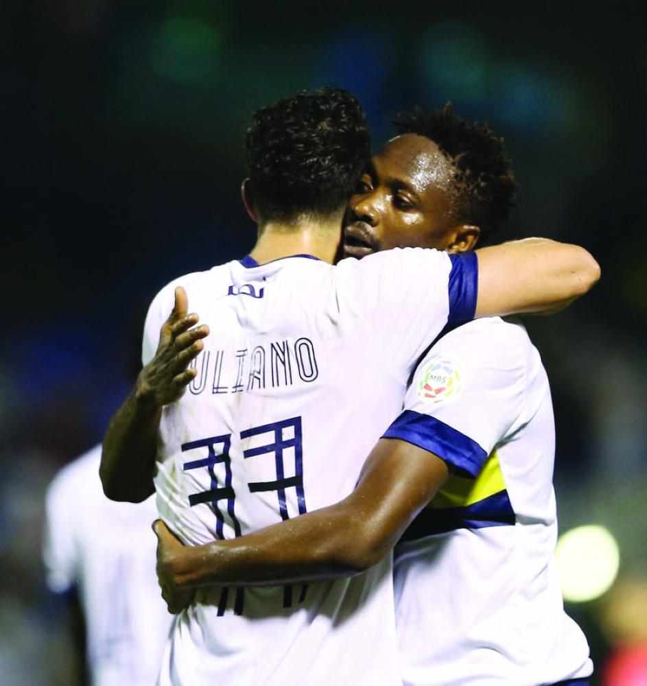 موسى وجوليانو يحتفلان بالفوز على الاتفاق.