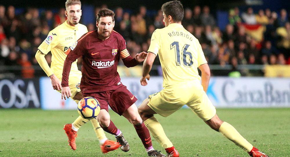 لقطة من مباراة سابقة جمعت برشلونة وفياريال في الدوري الأسباني.