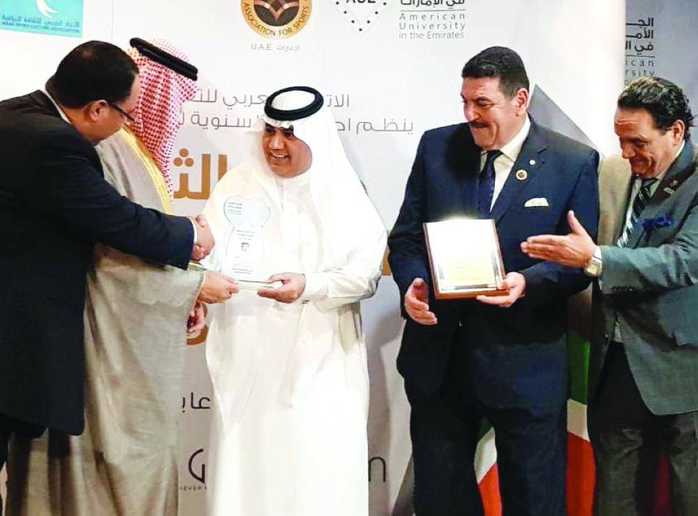نيابة عن رئيس هيئة الرياضة ورئيس الاتحاد العربي لكرة القدم رئيس اتحاد التضامن الإسلامي تركي آل الشيخ، تسلم الدكتور رجاء الله السلمي وكيل الرئيس للعلاقات والإعلام، اليوم (السبت)، جائزة أوسكار الشخصية القيادية الرياضية لعام 2018 للاتحاد العربي للثقافة الرياضية في حفله السنوي الذي أقيم بالجامعة الأمريكية في الإمارات.