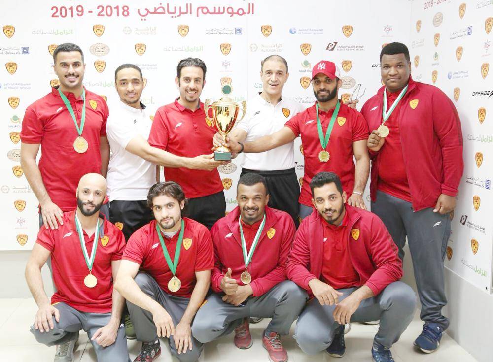 رئيس القادسية مساعد الزامل يتوسط لاعبي الجودو.