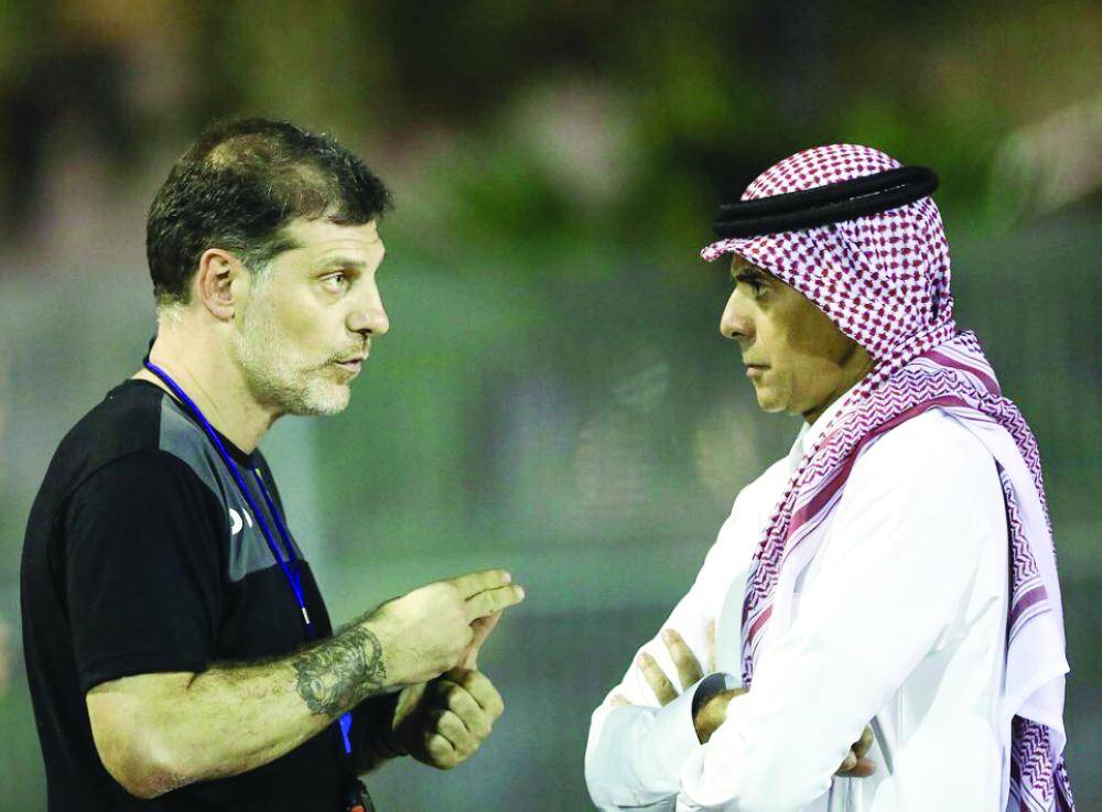 رئيس نادي الاتحاد لؤي ناظر في نقاش فني مع مدرب الفريق بيليتش.