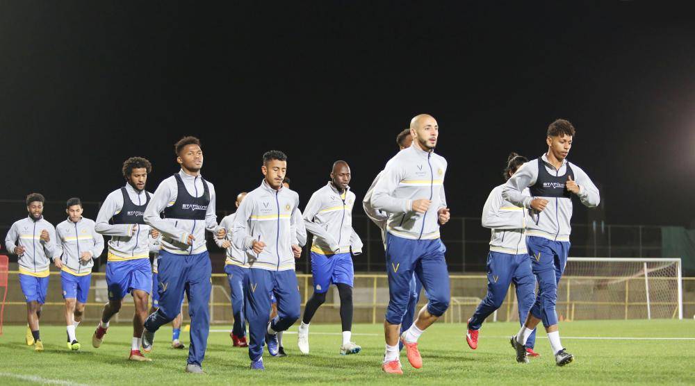 من جانب آخر، رفع المدرب هيلدر كريستافو درجة الاستعداد لمباراة الفتح غدا (الجمعة) ضمن الجولة الخامسة عشرة من دوري كأس الأمير محمد بن سلمان للمحترفين، وشهدت التدريبات خلال اليومين الماضيين تواجد الثماني الأجنبي، البرازيليان برونو وجوليانو وبيتروس، والمغربيان نورالدين امرابط وعبدالرزاق حمدالله، والأسترالي براد جونز والنيجيري أحمد موسى والبيروفي كرستيان راموس بعد أن تمتعوا بإجازة لمدة 3 أيام عقب مباراة الاتحاد، وشارك في التدريب أحمد الفريدي ومحمد السهلاوي بعد اكتمال شفائهم، حيث سيكونون في دكة البدلاء كخيارات جاهزة، وحاول هيلدر تجريب أكثر من لاعب لتعويض غياب عبد العزيز الجبرين الموقوف بسبب تراكم الكروت، وإبراهيم غالب ويحيى الشهري المنضمين مع المنتخب بجانب عمر هوساوي ووليد عبدالله، فيما من المتوقع أن يشارك عبدالله مادو بجانب راموس لتعويض غياب البرازيلي برونو أوفيني الموقوف بالكروت الصفراء، ومن المنتظر أن يغادر الفريق مساء اليوم (الخميس) للأحساء، بعد نقل المباراة من قبل لجنة المسابقات بسبب عدم جاهزية ملعب الأمير فيصل بن فهد (الملز) لتلبي طلب الإدارة النصراوية.