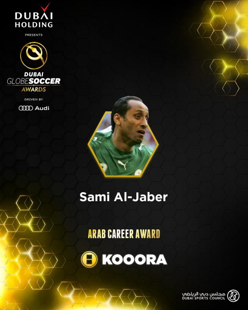 حقق اللاعب السابق للمنتخب السعودي ونادي الهلال سامي الجابر اليوم (الخميس) لقب أفضل مسيرة لاعب عربي، وذلك خلال حفل توزيع جوائز جلوب سوكر برعاية مجلس دبي الرياضي في دولة الإمارات.