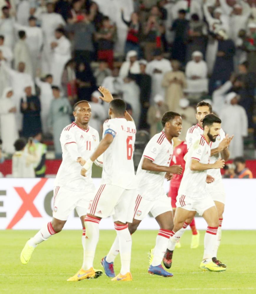 وشهدت المباراة بداية متوسطة من المنتخبين ولم تسنح فرص خطرة لأي منهما، وفي الشوط الثاني أنقذ الحارس الإماراتي خالد عيسى مرمى فريقه من هدف محقق بعد أن تصدى لتسديدة علي جعفر لتصل لمحمد الرميحي ويسددها قوية ليتألق خالد عيسى ويبعدها مرة أخرى، ورد علي مبخوت بتسديدة قوية مرت بجوار القائم، ومن ركلة زاوية سجل محمد الرميحي الهدف الأول لمنتخب البحرين في الدقيقة 78، وجاء الرد الإماراتي بعد عشر دقائق حيث احتسب حكم المباراة الأردني أدهم مخادمة ركلة جزاء لمصلحة الإمارات بعد لمسة يد على اللاعب البديل محمد جاسم وتقدم لها أحمد خليل وسددها قوية في المرمى البحريني كهدف تعادل للإمارات في الدقيقة 88، لينتهي اللقاء بالتعادل ليصبح لكل منتخب نقطة في بداية مشوارهما في المجموعة الأولى التي تضم بجانبهما منتخبي تايلاند والهند.