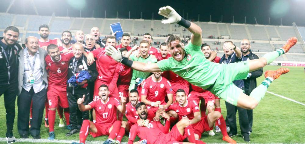 احتفالية لاعبي منتخب لبنان في إحدى المباريات.