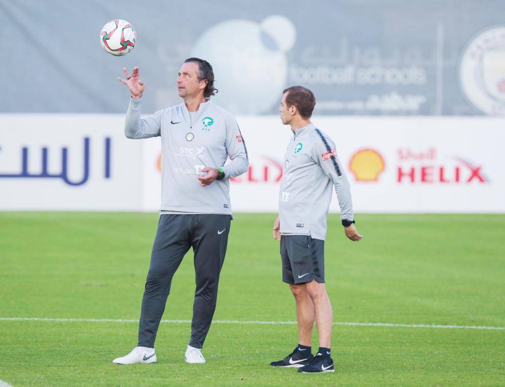 بيتزي قبل انطلاق أحد تدريبات الأخضر في الإمارات.