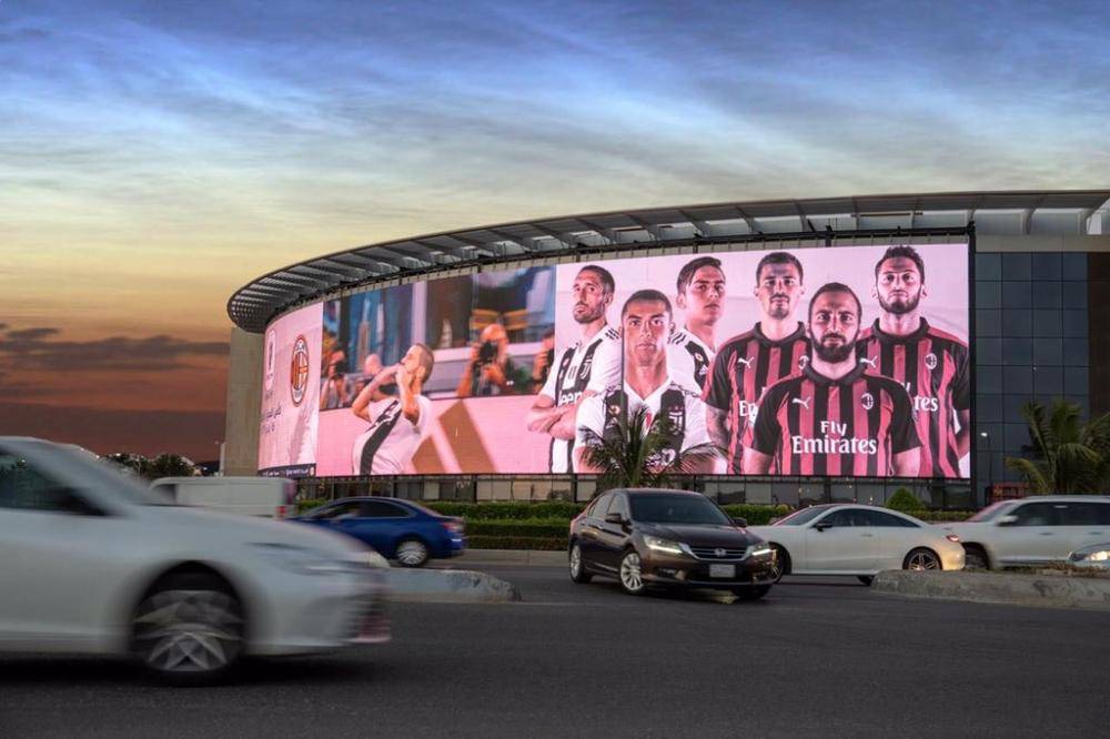 شاشة عملاقة في أحد المراكز التجارية بجدة للترويج لمباراة السوبر الإيطالي