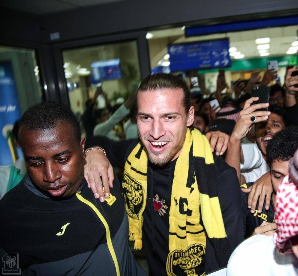 بريجوفيتش محاطا بالجماهير لحظة وصوله جدة.