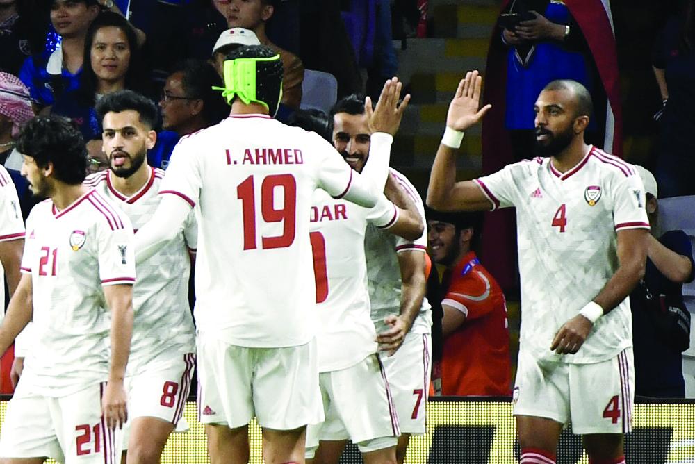 في اللقاء الأول والذي جمع منتخب الإمارات وتايلاند وانتهى بالتعادل بهدف لكل منهما، تقدمت الإمارات أولاً عن طريق علي مبخوت (د.6)، ومن ثم تعادل لتايلاند بوانج شان (د.41)، ليصل المنتخب الإماراتي للنقطة الخامسة ويتصدر المجموعة، بينما وصلت تايلاند للنقطة الرابعة واحتلت الوصافة.