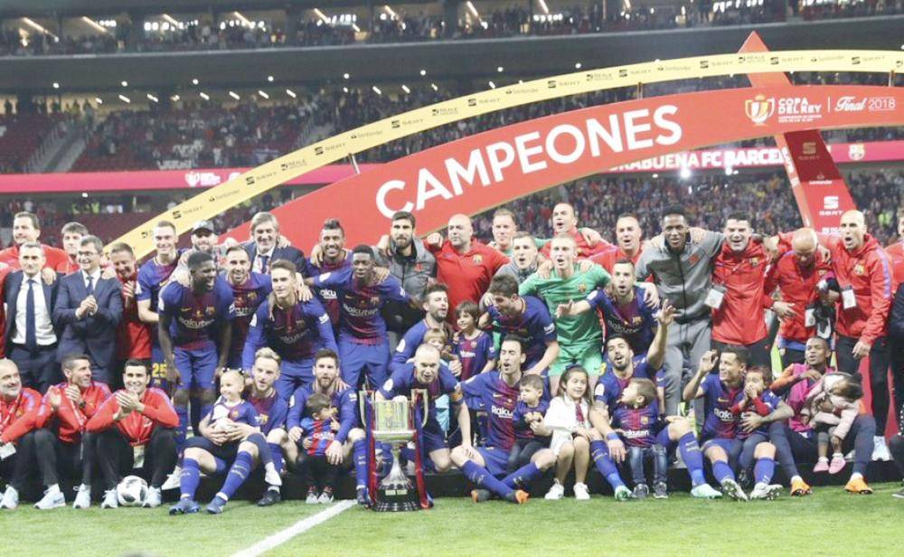 لاعبو برشلونة عقب تتويجهم بكأس إسبانيا في نسخة سابقة.