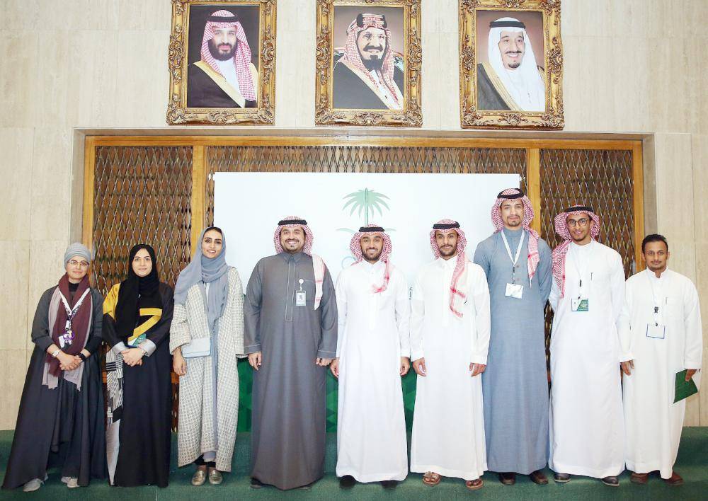 الأمير عبدالعزيز بن تركي يتوسط أعضاء لجنة الرياضيين السعوديين.