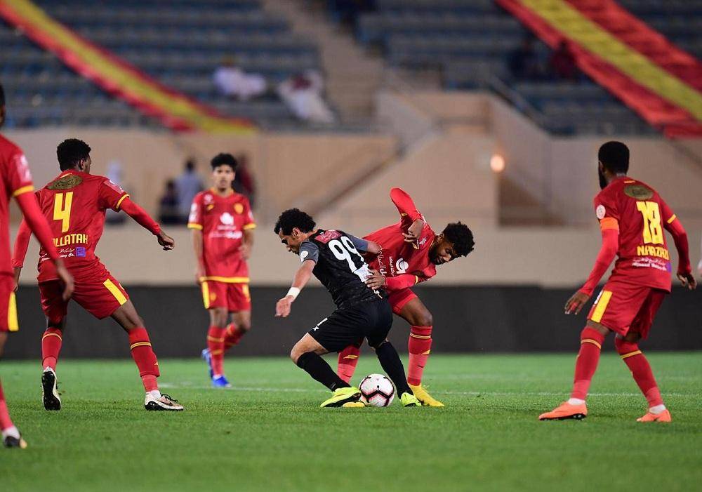حسن الراهب محاصرا من قبل لاعبي القادسية