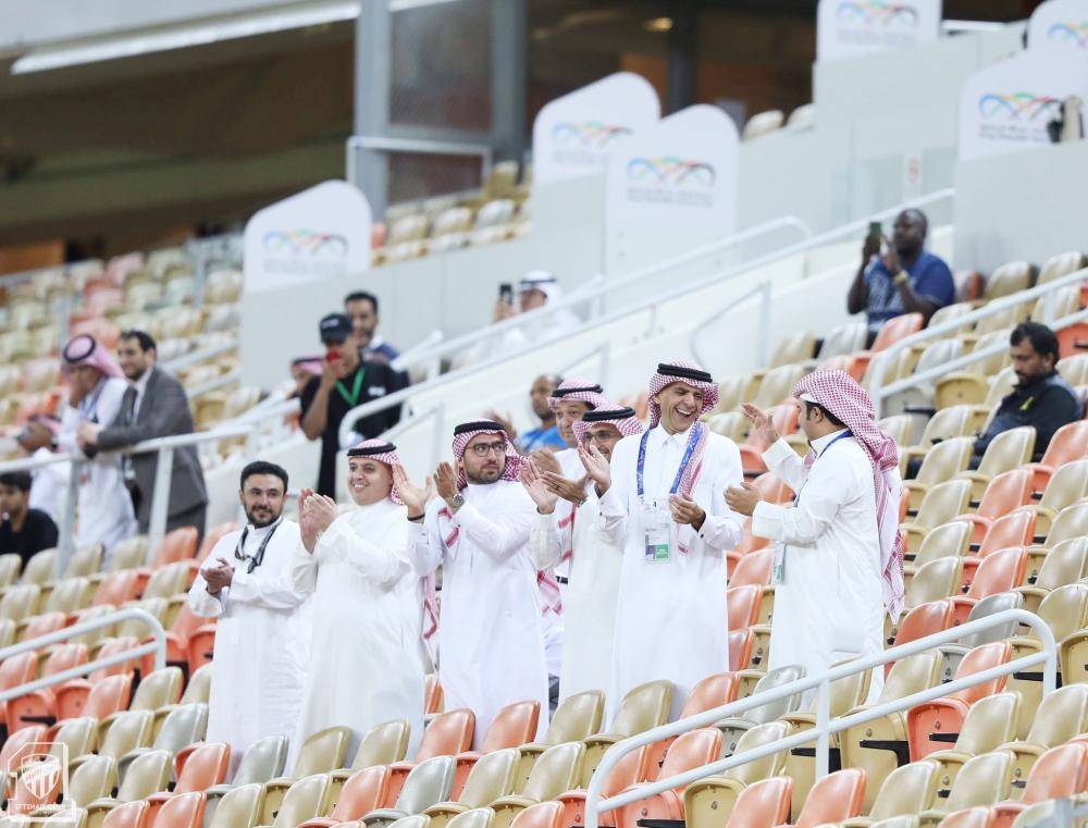 رئيس نادي الاتحاد لؤي ناظر يحتفل برفقه أعضاء إدارته بالفوز على الريان القطري