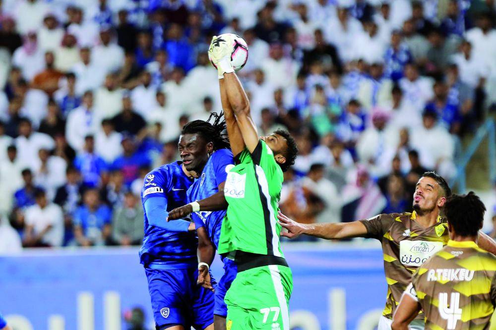 لقطة من مباراة الهلال وأحد أمس.