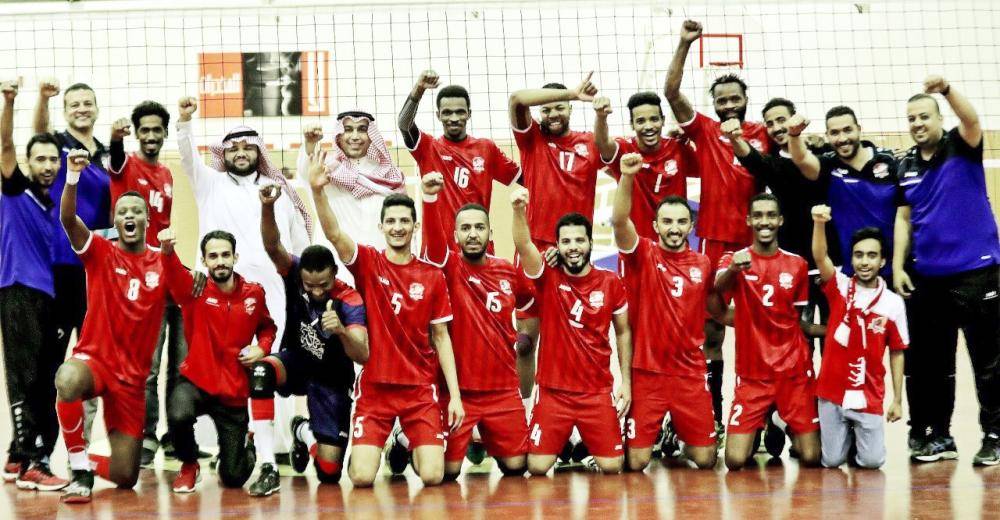 خيمي يشارك لاعبي الطائرة والجهازين الفني والإداري فرحة الصعود للممتاز.