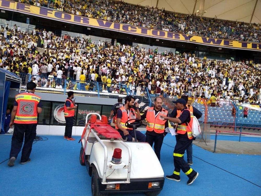 عناصر من الهلال الأحمر في استاد الملك فهد أثناء مواجهة النصر والهلال.