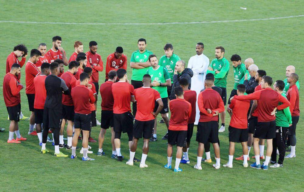 مدرب الاتفاق سيرخيو في اجتماع مع اللاعبين قبل مواجهة الهلال.