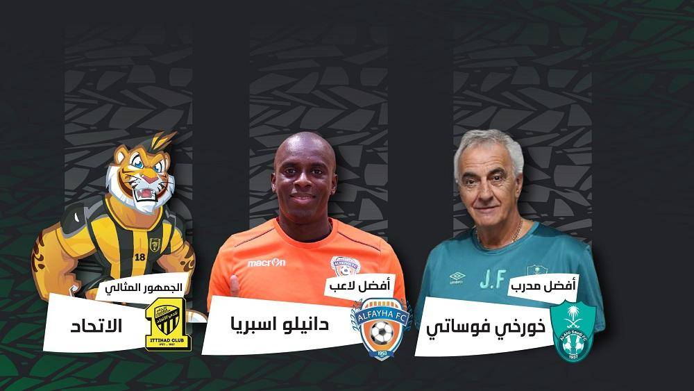 فيما نال الأوروغوياني فوساتي جائزة أفضل مدرب لأول مرة منذ توليه دفة الأمور الفنية في الأهلي، بعد أن تمكن من قيادة فريقه للفوز على نادي الشباب في قمة لقاءات الجولة برباعية نظيفة ليحافظ على مركزه الخامس في سلم الترتيب، وبفارق الأهداف عن التعاون صاحب المركز الرابع، فيما تفصله عن الشباب الذي يحتل المركز الثالث نقطة واحدة فقط.