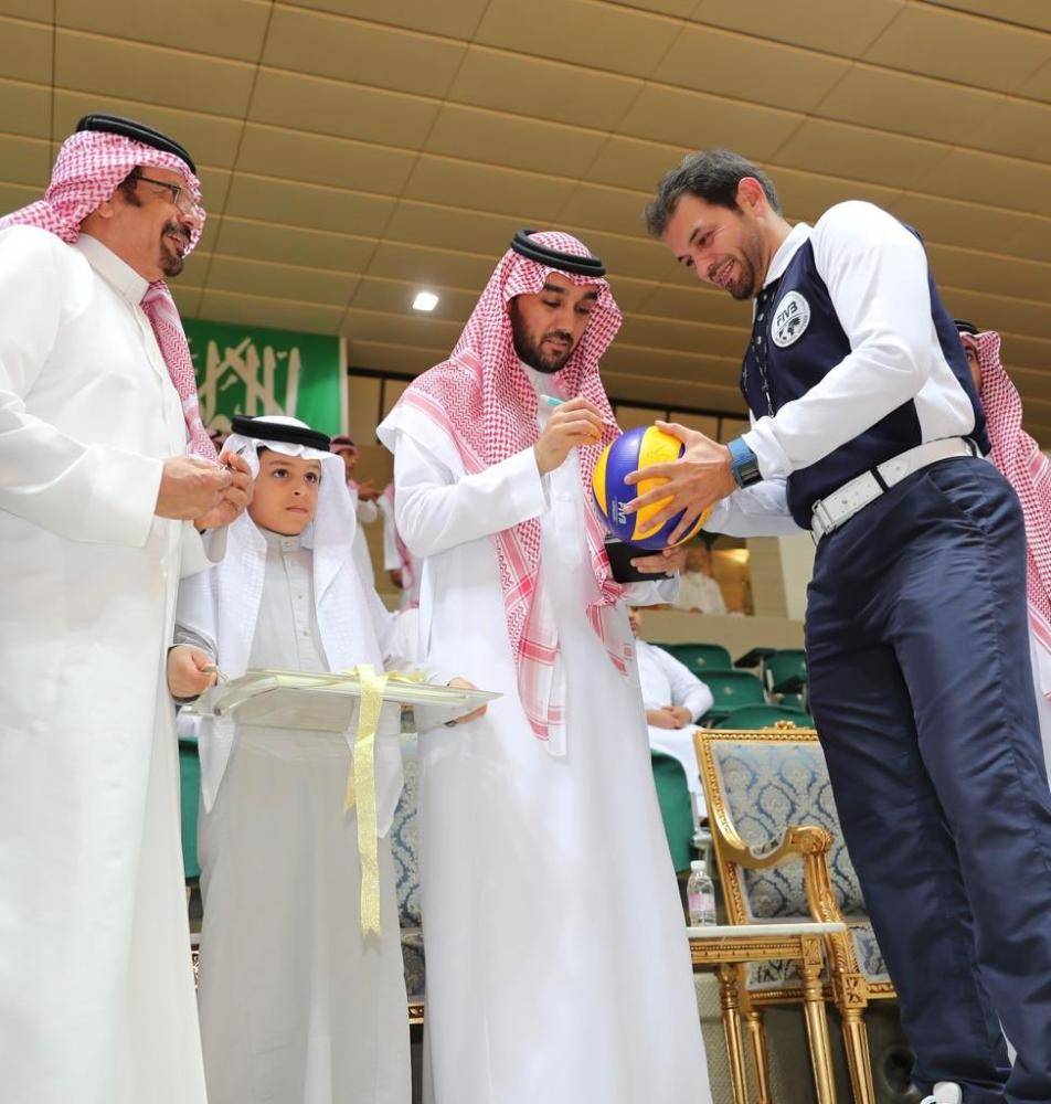 توج رئيس الهيئة العامة للرياضة رئيس اللجنة الأولمبية السعودية الأمير عبدالعزيز بن تركي الفيصل فريق الهلال ببطولة كأس الاتحاد السعودي للكرة الطائرة والميداليات الذهبية بعد فوزه على الاتحاد بنتيجة 3/2 في المباراة التي جمعتهما اليوم على صالة الهيئة العامة للرياضة بجدة بحضور النائب الأول لرئيس الاتحاد الدولي للكرة الطائرة الدكتور صالح بن ناصر ورئيس الاتحاد السعودي للعبة الدكتور إبراهيم البابطين،