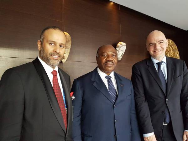 باهويني مع رئيس الفيفا ورئيس الاتحاد الأفريقي.