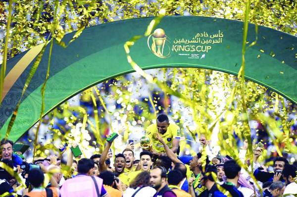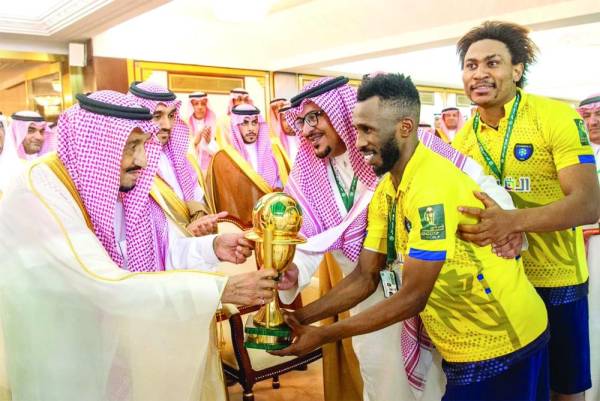 توج خادم الحرمين الشريفين الملك سلمان بن عبدالعزيز آل سعود -حفظه الله-، فريق التعاون بكأس الملك والميداليات الذهبية بعد فوزه على الاتحاد بهدفين لهدف في اللقاء الذي جمعهما مساء أمس (الخميس) على استاد الملك فهد الدولي بالرياض، ونال فريق الاتحاد المركز الثاني والميداليات الفضية.