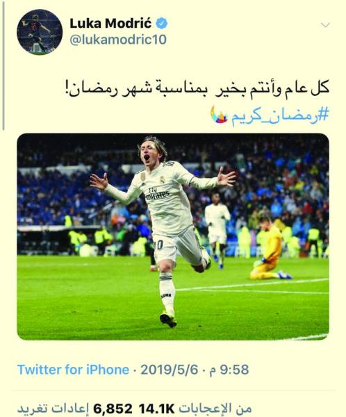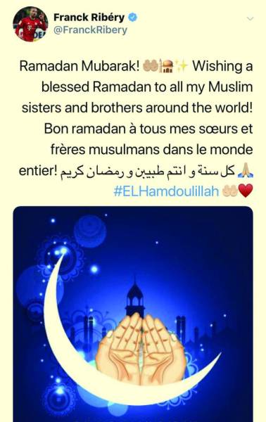 وهنأ مهاجم نادي بايرن ميونيخ الألماني النجم الفرنسي فرانك ريبيري محبيه من المسلمين بالشهر الفضيل بقوله «كل سنة وأنتم طيبين ورمضان كريم». فيما هنأ عدد كبير من اللاعبين غير المسلمين على رأسهم العالمي لوكا مودريتش الذي قال «كل عام وأنتم بخير بمناسبة شهر رمضان الكريم».