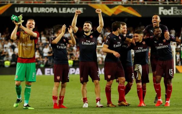 وسيكون النهائي المقرر في 29 مايو في باكو إنجليزيا بالكامل لأن تشلسي سيتواجه مع أرسنال المتأهل على حساب فالنسيا الإسباني بفوزه 3-1 ذهابا و4-2 إيابا.